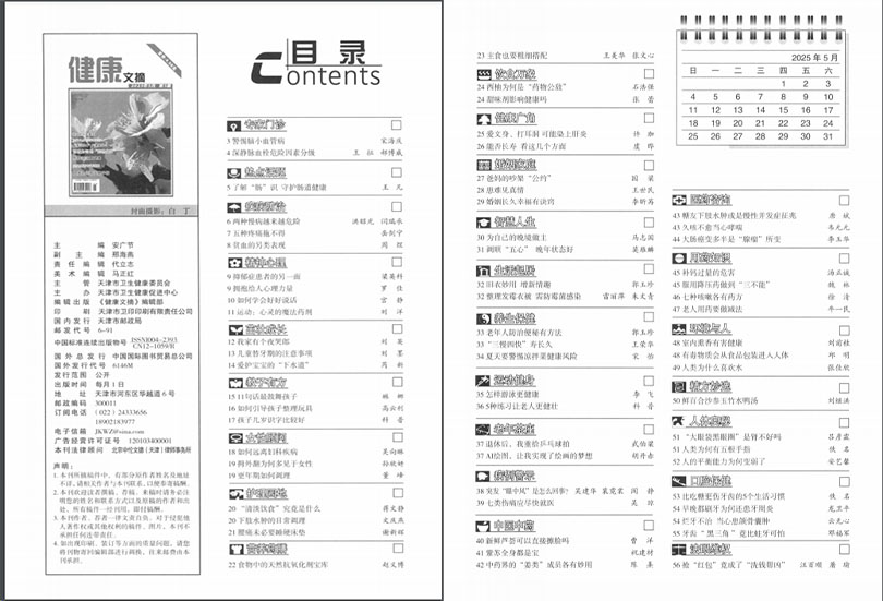 第一部分是专题报道,详细介绍当前热门的健康话题和最新的医学研究成果。这些专题文章由行业内知名专家撰写,内容充实全面,涵盖了各个方面的健康信息,如饮食推荐、运动技巧、心理调节等。这些文章不仅改善读者对健康的了解,还提供了实用的建议和方法。第二部分是专栏文章,由来自医学界、保健领域的专家和作者撰写。这些专栏文章以个人经验和专业见解为基础,涵盖了各种健康问题的解决方案。读者可以从中获取健康知识、了解不同疾病的预防和治疗方法、学习健康管理的技巧等。